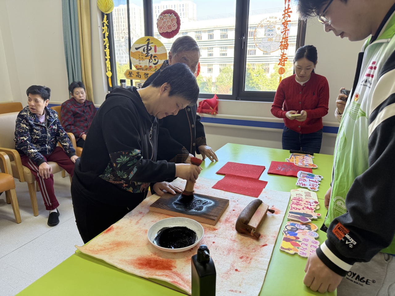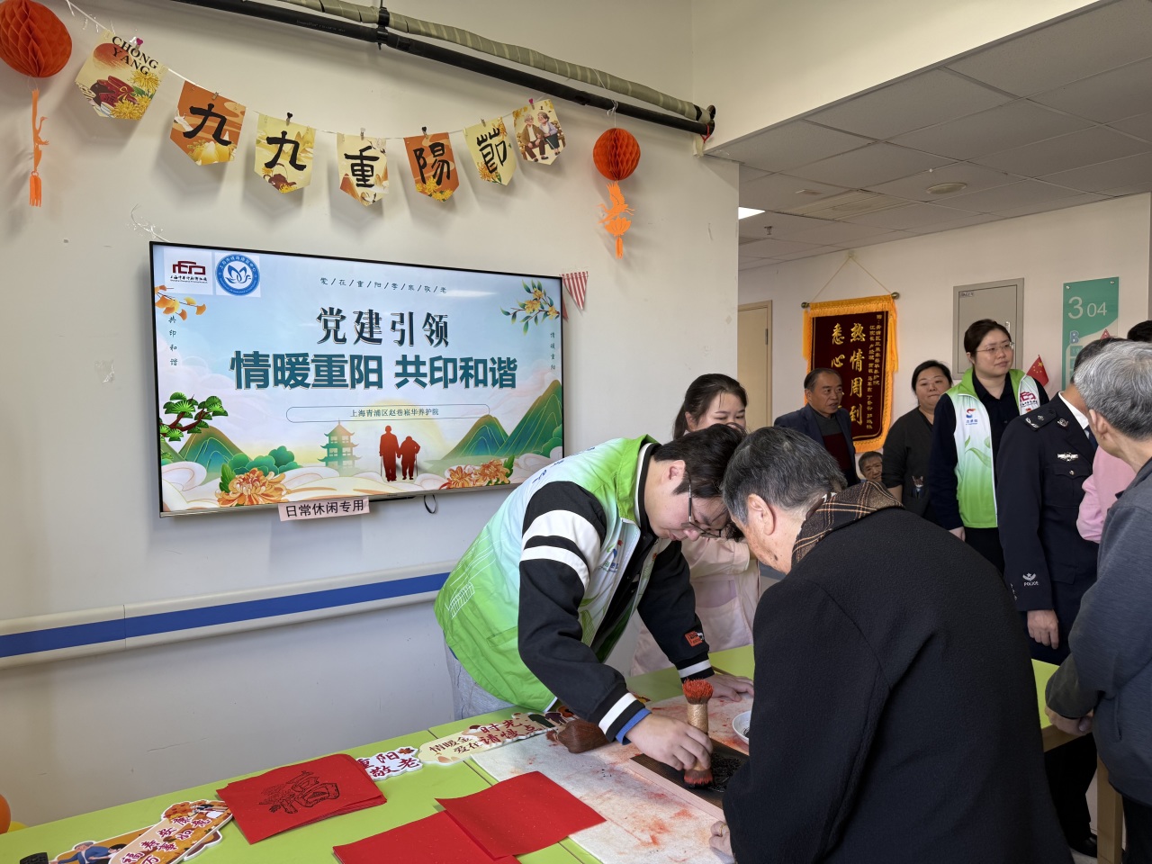 双方以党建为纽带,提前与养护院精准对接需求,不仅考虑到老人对节日文化的期待,更关注到老年群体日常的健康监测需求。从拓印福字工具准备、重阳糕口味筛选,到义诊设备调试,每一个环节都凝聚着对老年群体的全方位关怀,让党建成果惠及其生活与健康。