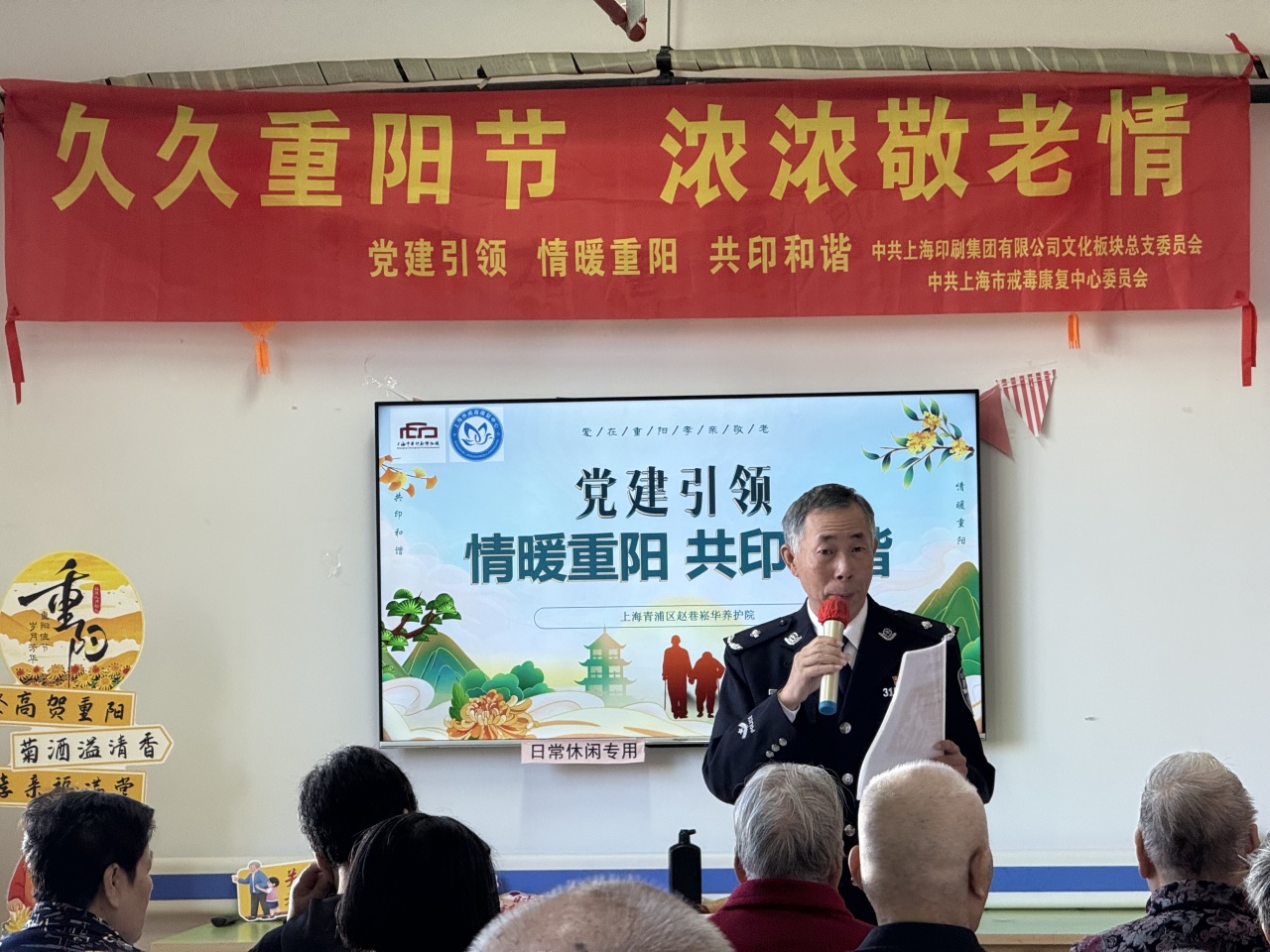 岁岁重阳暖人心,党建引领践初心。2025年10月29日重阳节当天,中共上海印刷集团有限公司文化板块总支委员会联合中共上海市戒毒康复中心委员会,以 “党建引领 + 志愿服务” 为抓手,共同走进上海青浦区赵巷崧华养护院,拓福送糕,健康义诊,为养护院内的老人送上满含温情的节日祝福。