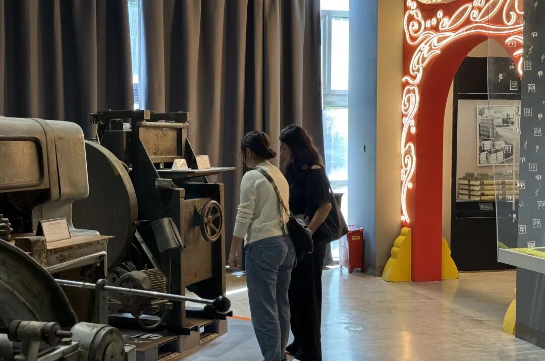 他们穿过时光隧道,系统地了解中国近现代印刷史的发展历程;走入 “一本书的千年之旅” 特展,对中国古代四大发明 —— 蔡伦的造纸术与毕昇的活字印刷术产生了浓厚的兴趣,驻足观赏并拿出手机进行拍照留念。